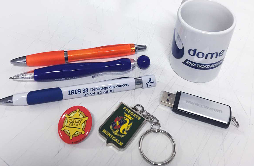 CDV Signalétique vous propose une large gamme d’objets publicitaires et goodies de qualité qui vous donnera la possibilité d’offrir un cadeau sur-mesure à vos clients en prospects en toutes circonstances qui sont répartis sous les thèmes suivants : écriture, environnement du bureau, maison, communication, sacs et bagages, textiles...Selon les produits, les marquages sont de type traditionnels (sérigraphie, tampographie, marquage à chaud) ou en impression quadri numérique (stickers posés, domings, transferts jet d'encre, laser, broderie).CDV Signalétique propose entre autres des stylos publicitaires, des calendriers, des t-shirts, des tasses ou encore des marquages, des flocages et de la sérigraphie sur textiles et d’autres objets publicitaires et goodies selon vos besoins.